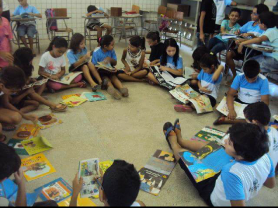 Uma vez por semana, em uma sala da escola municipal Demócrito Dummar, em Fortaleza, as crianças se reúnem em uma roda de leitura, escutam histórias e debatem sobre livros.